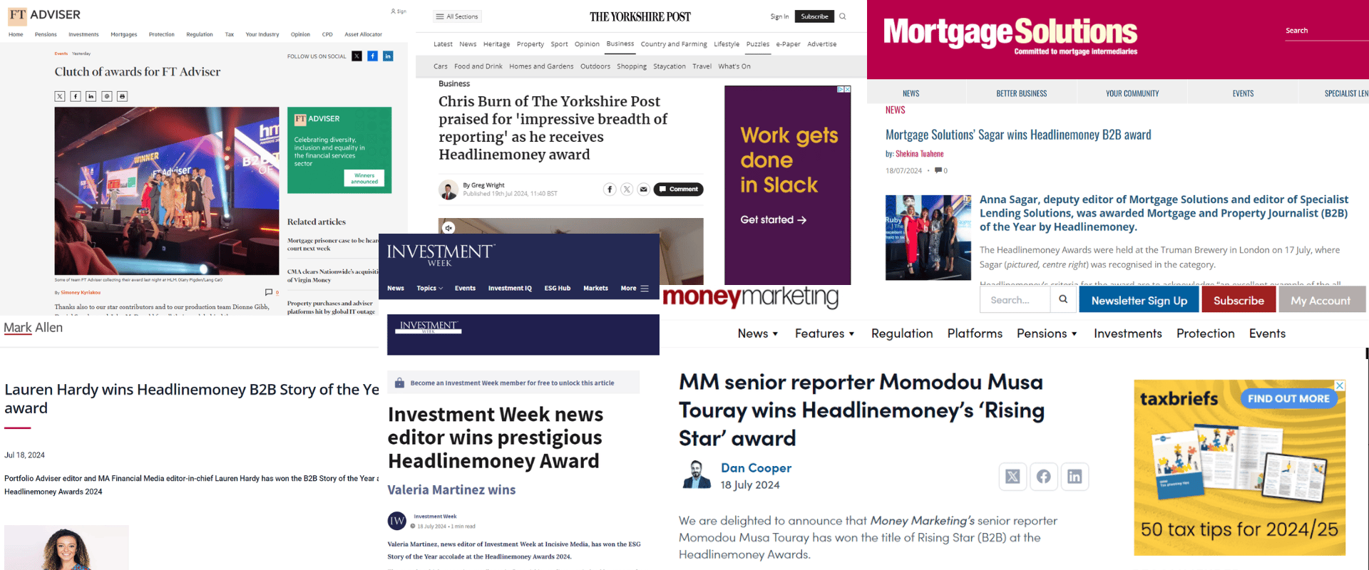 Portfolio Adviser’s editor wins Headlinemoney B2B Story of the Year award - Portfolio Adviser